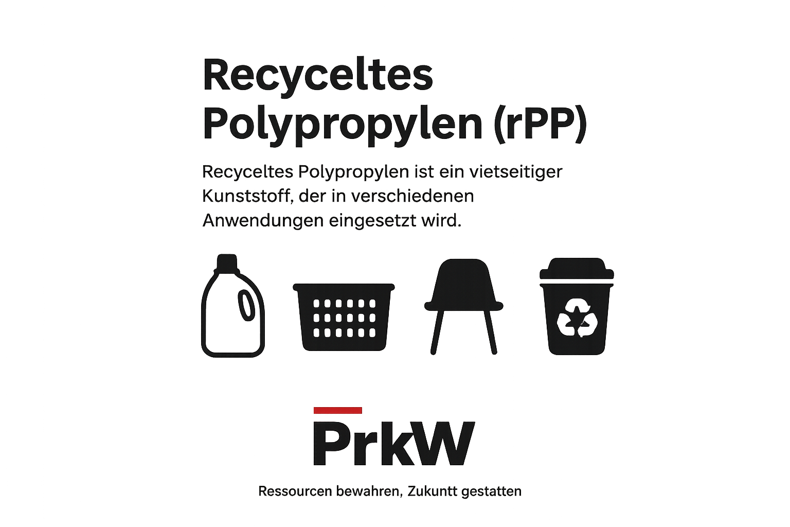 Recyceltes Polypropylen (rPP) ist ein vielseitiger Werkstoff, der aus wiederverwerteten PP-Produkten hergestellt wird. Es kombiniert Leichtigkeit, Haltbarkeit und Widerstandsfähigkeit gegen Chemikalien und Hitze. Durch den Einsatz von rPP reduzieren wir den Verbrauch von Primärrohstoffen und leisten einen aktiven Beitrag zum Umweltschutz.